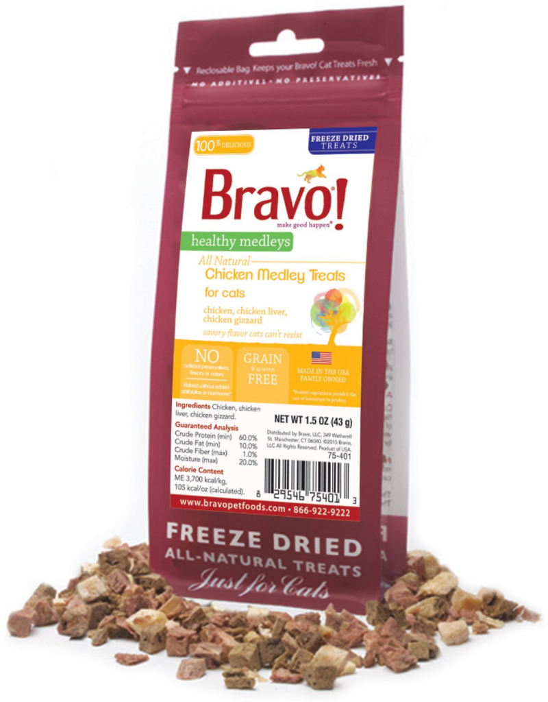 Bravo! Healthy Medley Grain-Free Chicken Freeze Dried Cat Treats, 1.5 Oz